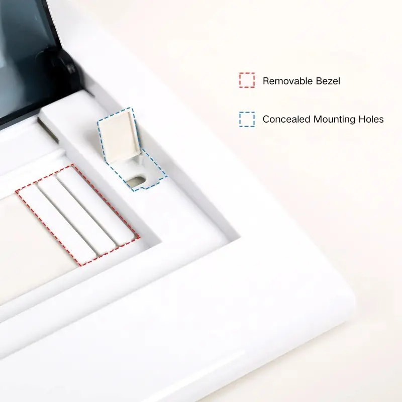 Găurile și sloturile standardizate sunt rezervate în panou, care este adecvat pentru întrerupătoarele de mainstream, dispozitivele de protecție a scurgerilor și contoarele inteligente și suportă adăugarea sau scăderea circuitelor. Suprafața panoului poate fi marcată cu nume de circuit sau etichete pentru identificare rapidă și depanare, potrivită pentru aplicații cu mai multe circuit.
