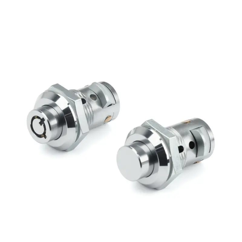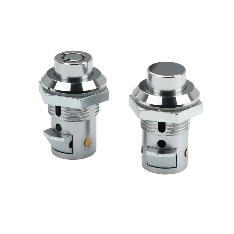 Încuietoarea cu cilindru din aliaj de zinc pentru automatele automate cu acționare prin buton are un design fără cheie pentru o operare simplă, făcându-l deosebit de potrivit pentru scenariile care necesită acces rapid. Modelul de blocare cu știft oferă securitate sporită. Ambele modele au dimensiuni de montare identice, astfel încât consumatorii îl pot alege pe cel care se potrivește nevoilor lor.