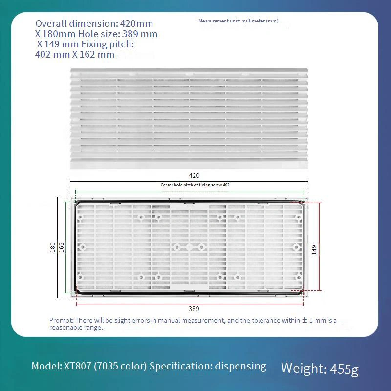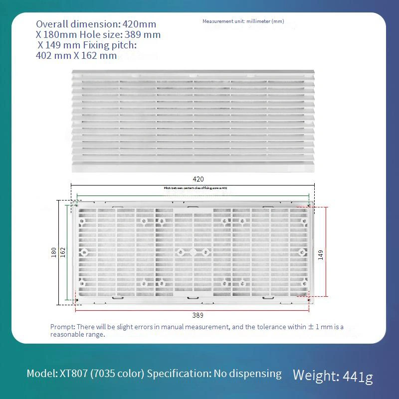 Dispune de un design de plasă de filtru înlocuibil pentru o întreținere și înlocuire zilnică ușoară, reducând semnificativ costurile de operare pe termen lung. Structura cadrului este disponibilă într-o culoare standard de gri-gri 7035. Este construit dintr-un material ABS care oferă o rezistență excelentă la deformare, asigurând stabilitatea pe termen lung.